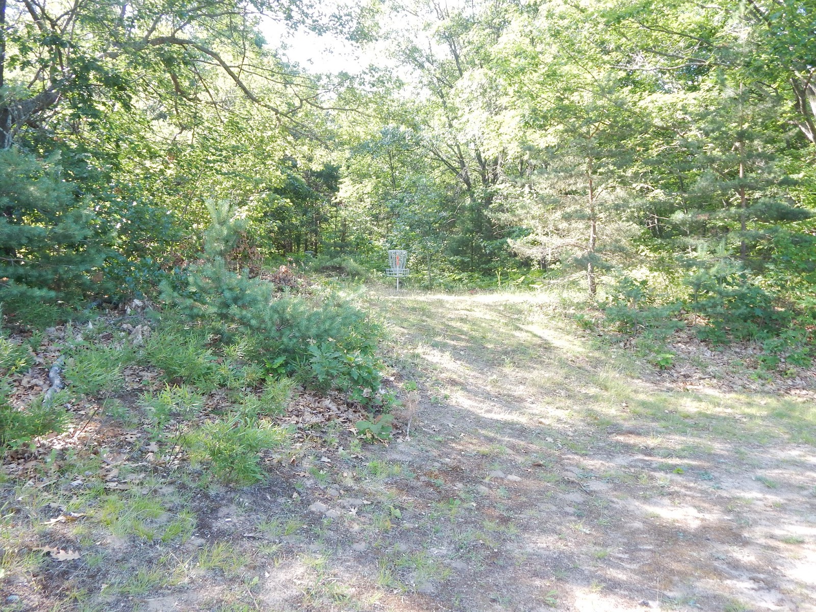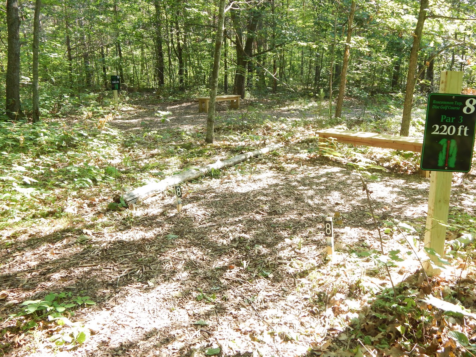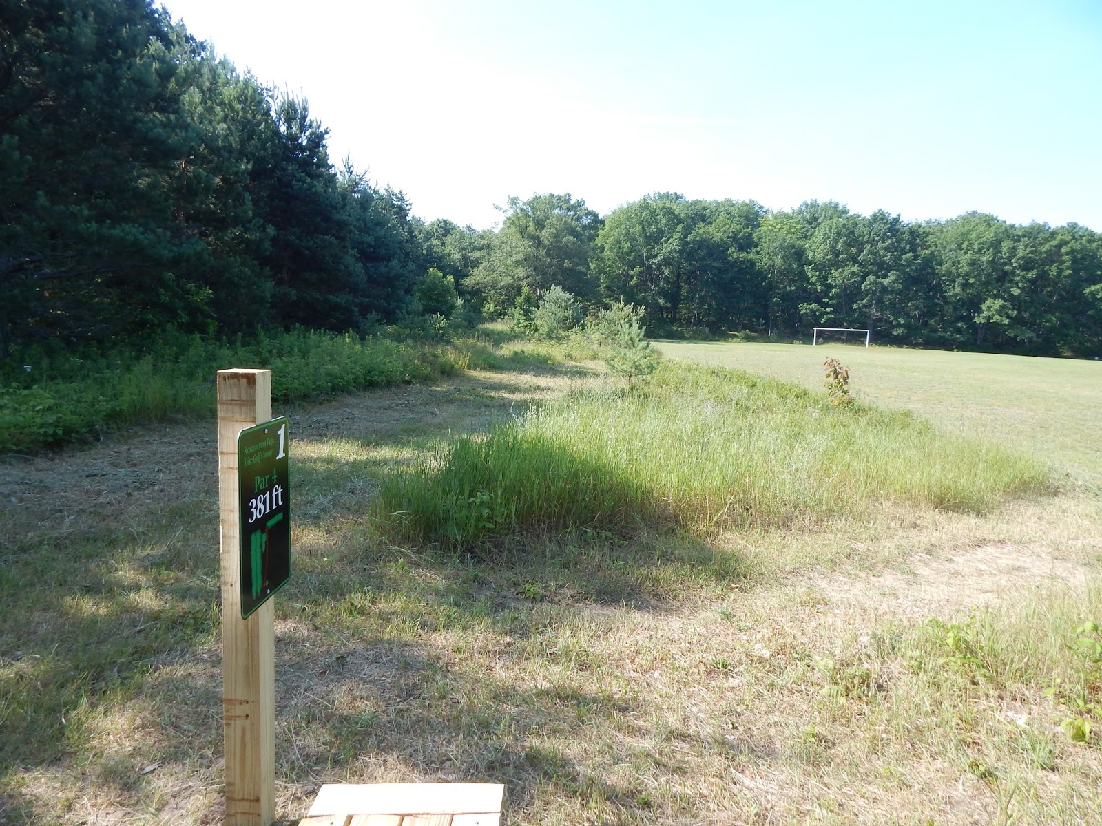 The new disc golf course at Houghton Lake, at the Roscommon Township Park, is a wonderful, well-designed 9-hole course, set back in the woods adjacent to the baseball and soccer fields. The course is short, mostly par 3's, but you'll find it to be extremely challenging, with lots of difficult shots through dense trees. You probably won't score par on this course, but you'll have a great time trying! Check out the hole-by-hole pics and slideshow, and let us know what you think.