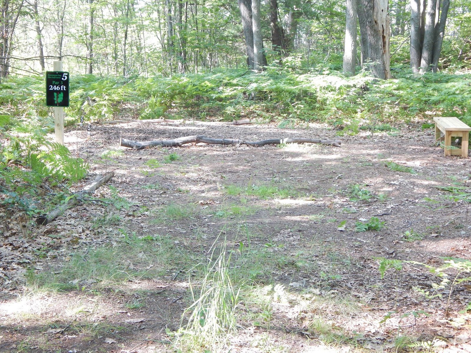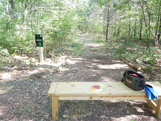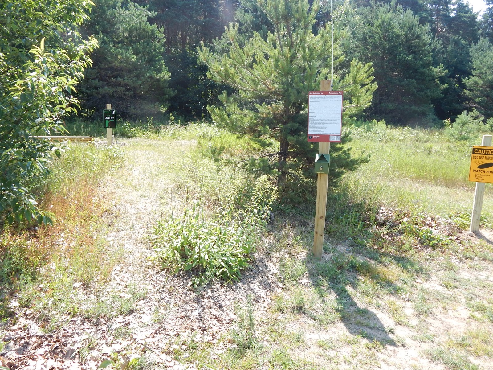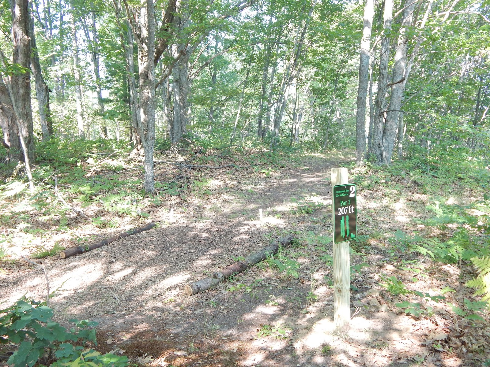 The new disc golf course at Houghton Lake, at the Roscommon Township Park, is a wonderful, well-designed 9-hole course, set back in the woods adjacent to the baseball and soccer fields. The course is short, mostly par 3's, but you'll find it to be extremely challenging, with lots of difficult shots through dense trees. You probably won't score par on this course, but you'll have a great time trying! Check out the hole-by-hole pics and slideshow, and let us know what you think.